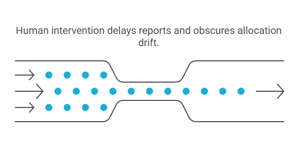 The operational hit is real. Allocation views age by the day, cash and public marks move under them, and placeholders creep into reports to keep meetings on track. Small inconsistencies multiply across trusts and SPVs, especially when statements land across four currencies and multiple banks. Reconciliation absorbs hours that should be spent on oversight. Confidence takes a knock too. You can defend the math, but it is hard to defend the vintage of inputs when a GP can shift an ending capital balance by a few basis points with a late-breaking file.