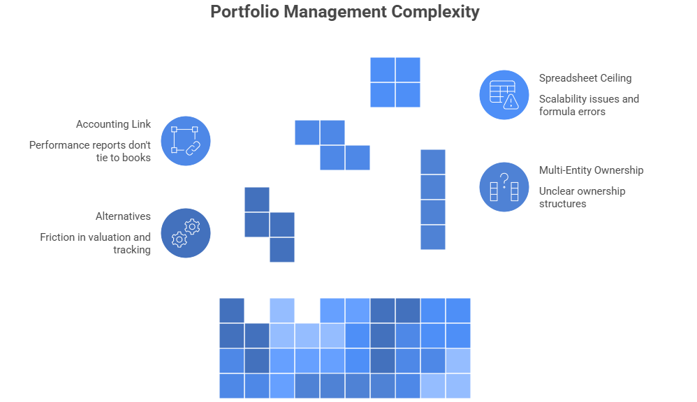 The pressure has gotten worse as portfolios have gotten more complex. Alternatives come with valuation lag, capital calls, messy statements, and timelines you do not control. Add multiple entities, multiple custodians, and multiple stakeholders who want clean answers on demand, and the portfolio management process can start to feel like a constant reconciliation project.
